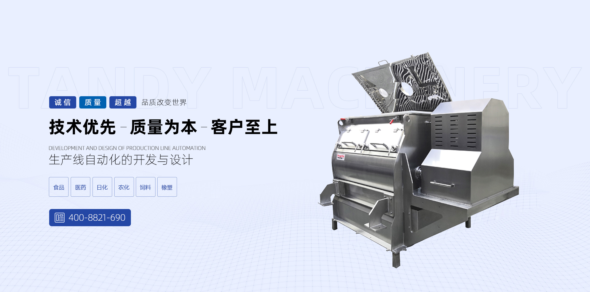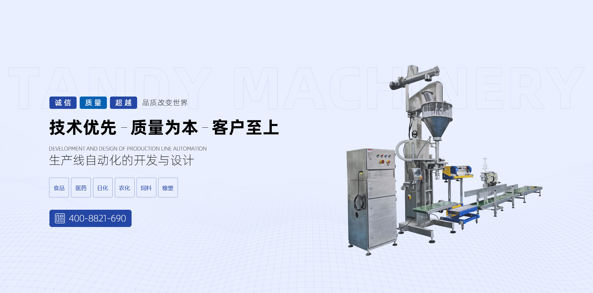 唐迪機(jī)械秉著“腳踏實(shí)地,實(shí)業(yè)強(qiáng)國(guó)”的思想,致力于粉體自動(dòng)化工程設(shè)計(jì)與制造,憑借強(qiáng)大的技術(shù)力量與售后支持,唐迪機(jī)械不斷開發(fā)出更多優(yōu)質(zhì)的產(chǎn)品,得到眾多客戶及同行的肯定與厚愛。